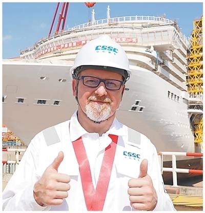 羅瓦蒂在建造中的“愛(ài)達(dá)·花城號(hào)”郵輪前。 回盛瑤攝